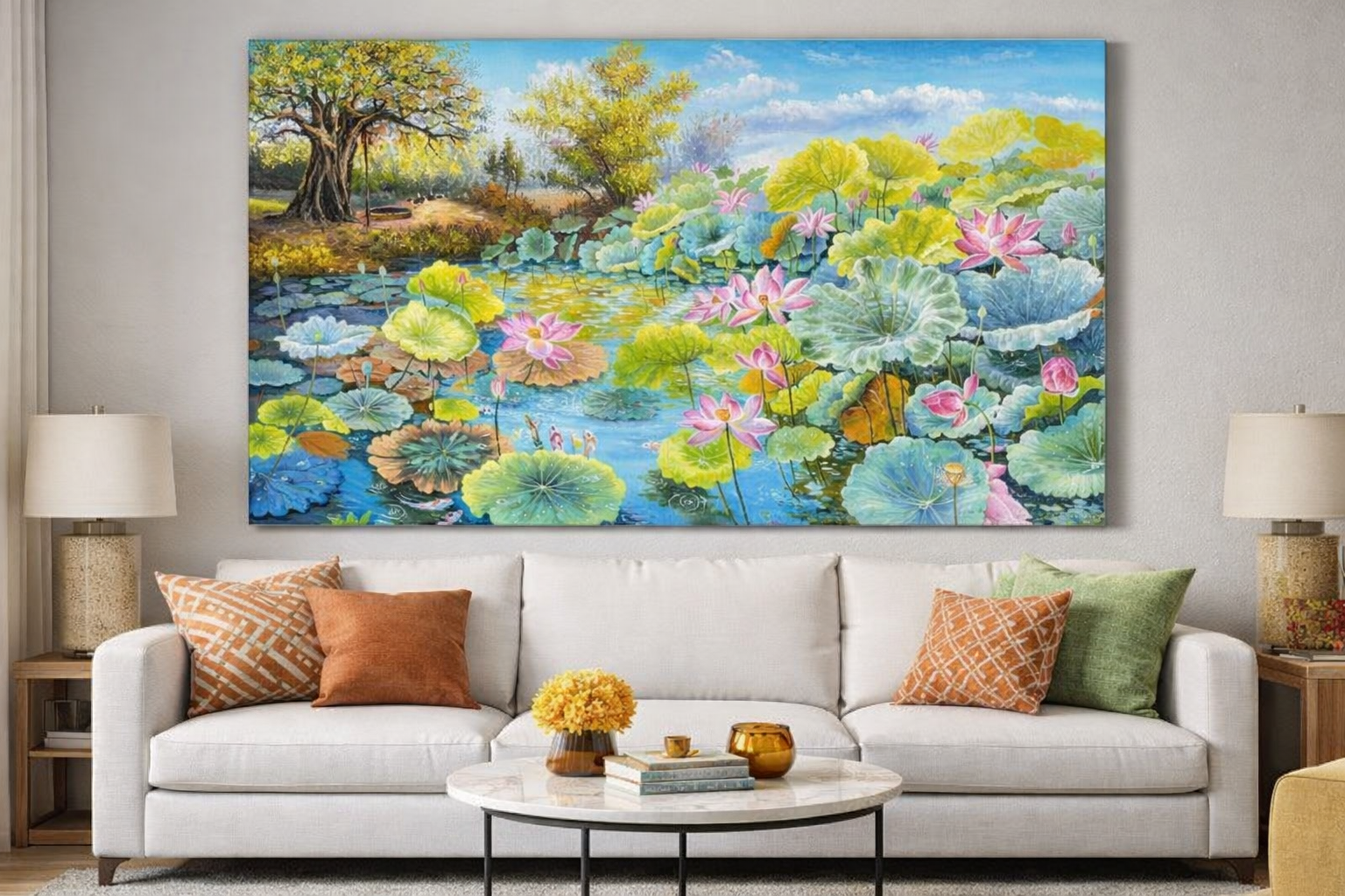 Bức tranh hoa sen treo nhiều đẹp SN110