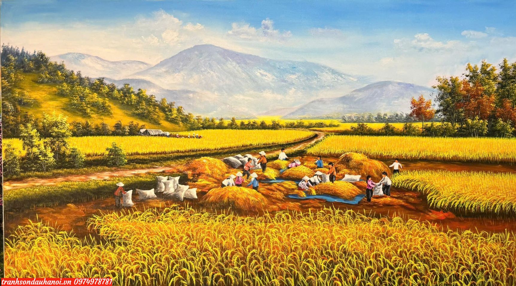 Tranh đồng quê mùa màng bội thu, mùa gặt lúa SN9