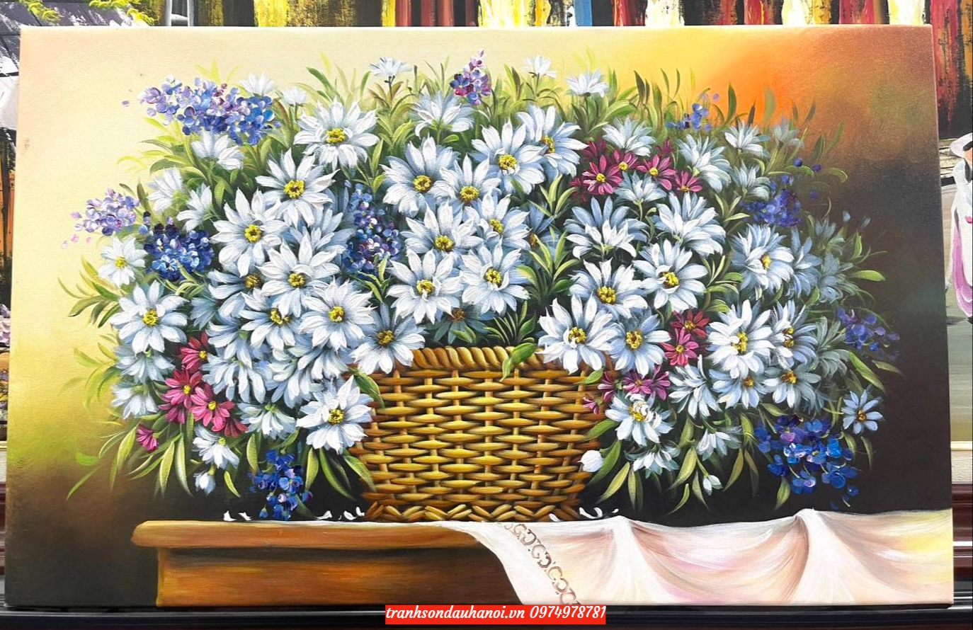 Đánh giá Tranh hoa cúc giỏ hoa cúc, tranh sơn dầu SN77