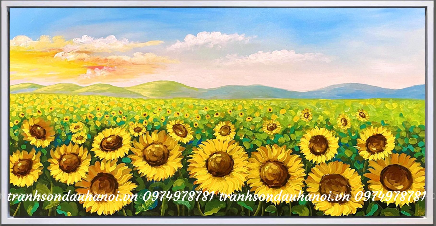 Tranh hoa hướng dương đẹp gây ấn tượng bởi sắc vàng rực rỡ, tươi sáng, mang đến cảm giác ấm áp và tràn đầy sức sống cho không gian. Hình ảnh hoa hướng dương luôn hướng về mặt trời tượng trưng cho niềm tin, hy vọng và sự vươn lên mạnh mẽ, rất phù hợp để treo phòng khách, phòng làm việc hoặc không gian kinh doanh. Không chỉ có giá trị thẩm mỹ, tranh hoa hướng dương đẹp còn mang ý nghĩa phong thủy tốt, giúp thu hút năng lượng tích cực, may mắn và tài lộc cho gia chủ.
